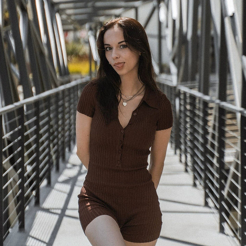 Get ready to be noticed in the Cathleen Romper from LaPose! This sexy and slim button-up romper is perfect for the upcoming summer-fall season! Whether you're strolling through town or dancing the night away in it, you won't be missed in this bold Green or Brown number! Show off your style and uniquely express yourself with the Cathleen Romper!